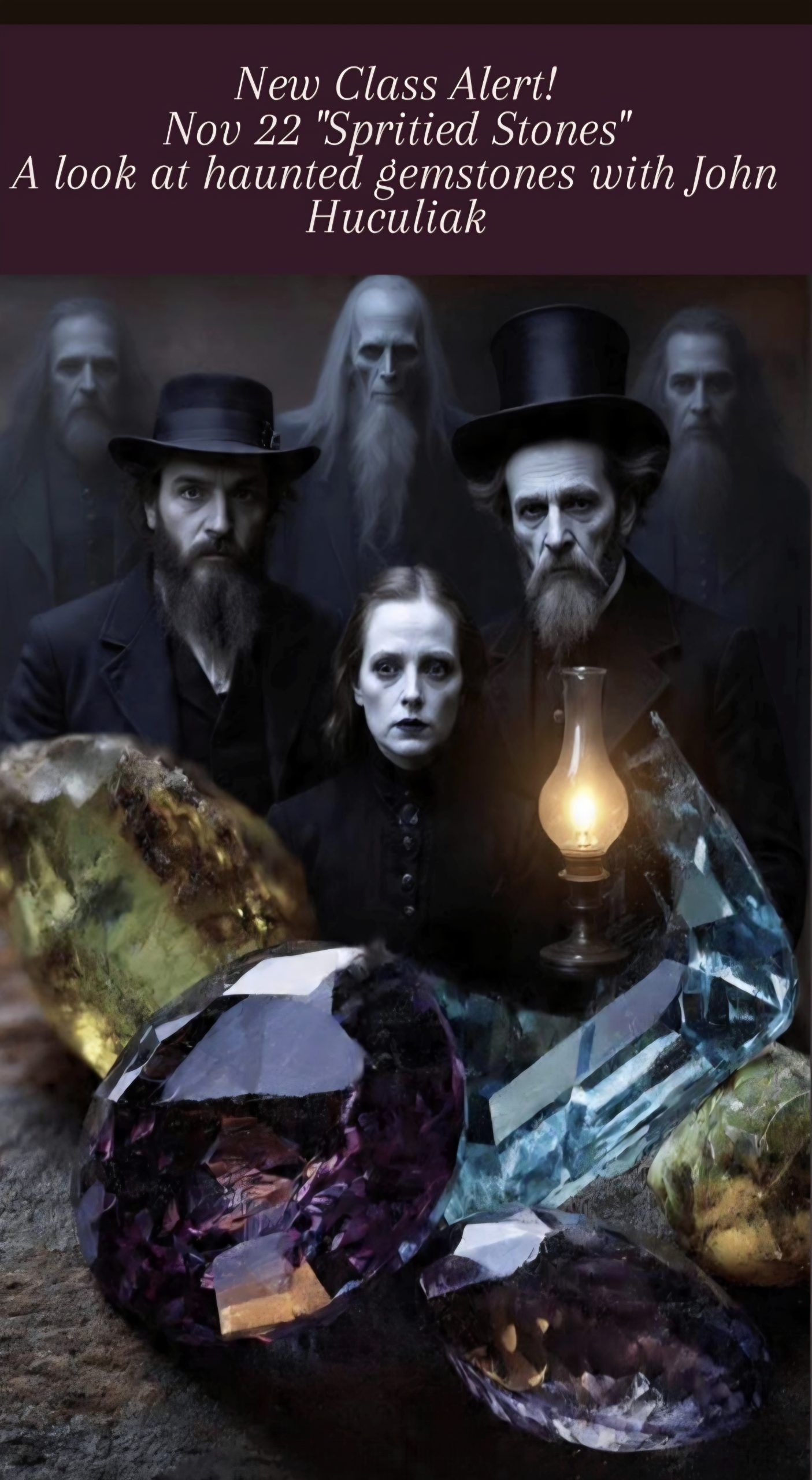 Join us Nov 22 7pm for a ghostly new class! Experience “Spirited Stones” an evening of learning how gemstones can hold energy. Discover some of the most famed haunted gemstones. Join us in welcoming John Huculiak! Available to purchase on the website only $33